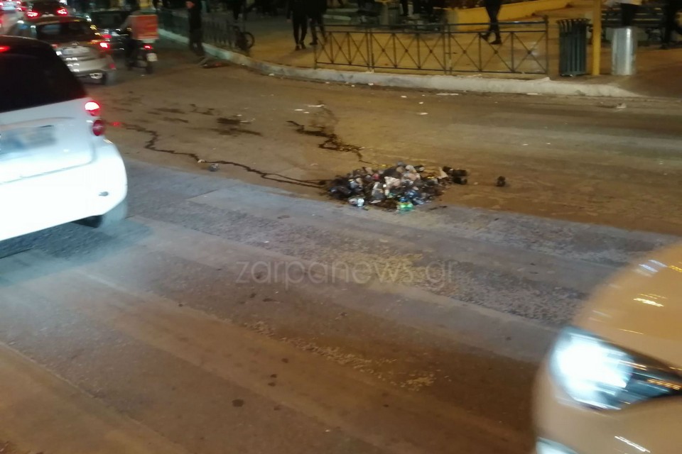 Στη συνέχεια οι «γνωστοί άγνωστοι καρναβαλιστές» άρχισαν να πετούν φωτοβολίδες, κροτίδες και πέτρες, προκαλώντας τις αστυνομικές δυνάμεις που είχαν παραταχθεί επί της οδού Τζανακάκη και για λόγους ασφαλείας διέκοψαν την κυκλοφορία των διερχόμενων οχημάτων.