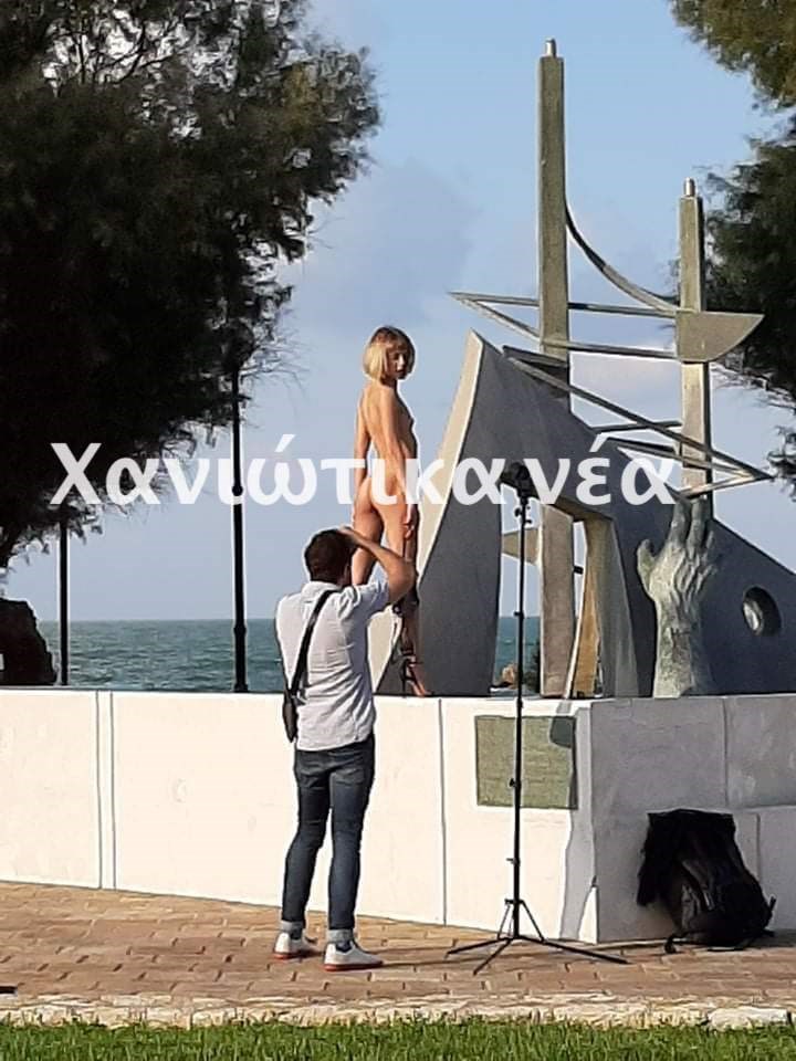 Γυμνή φωτογράφιση στο μνημείο του ναυαγίου “Ηράκλειον” στην πλατεία Τάλω στα Χανιά, πραγματοποιήθηκε το απόγευμα της Παρασκευής. Άγνοια για το περιστατικό δήλωσαν τόσο ο Δήμος Χανίων, όσο και το Λιμενικό και η Αρχαιολογία. Έκπληκτοι οι περαστικοί προσπαθούσαν να πιστέψουν στα μάτια τους. Το γεγονός διαδόθηκε από στόμα σε στόμα με αποτέλεσμα όλο και περισσότεροι να συγκεντρώνονται στο σημείο.