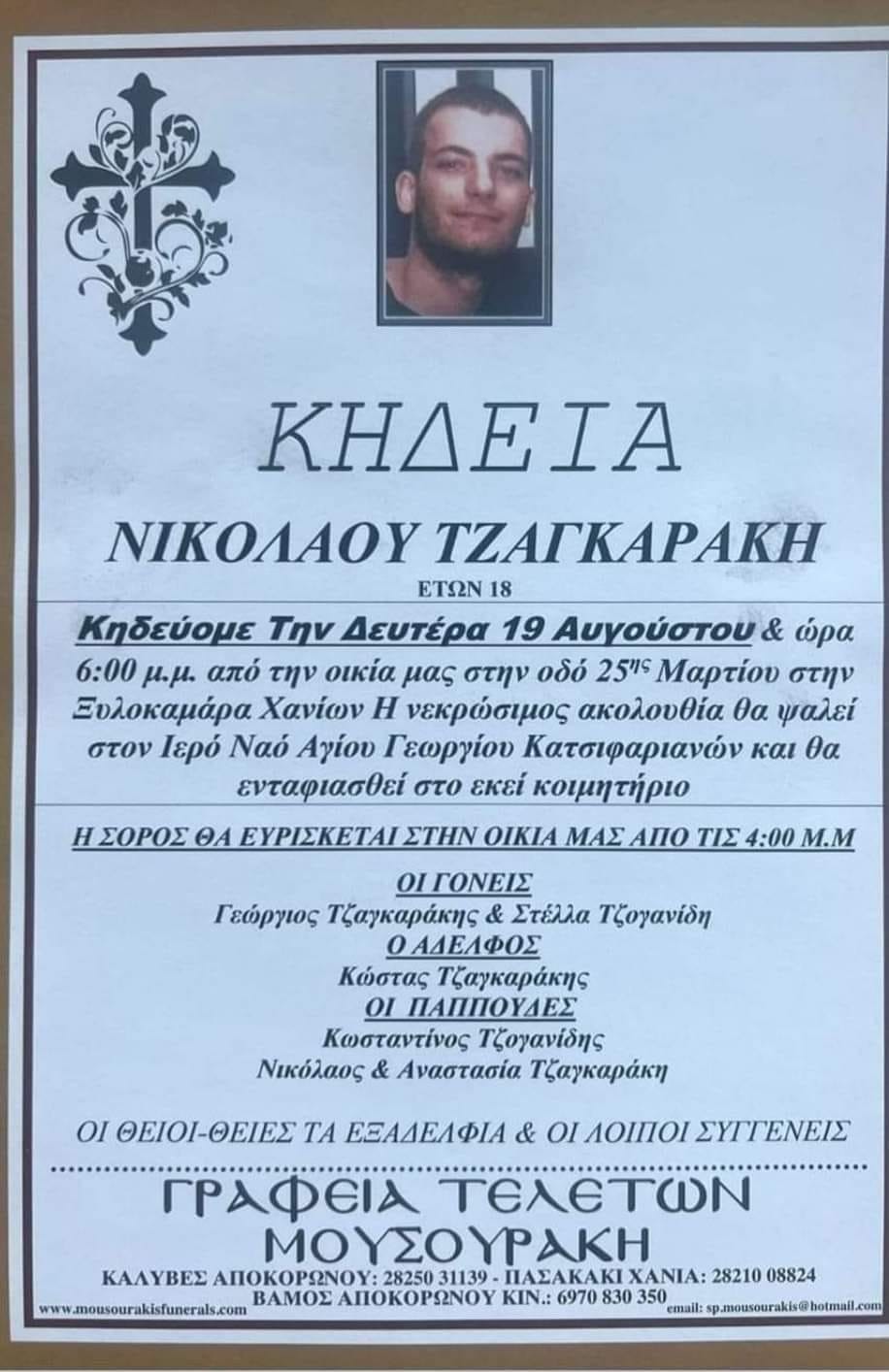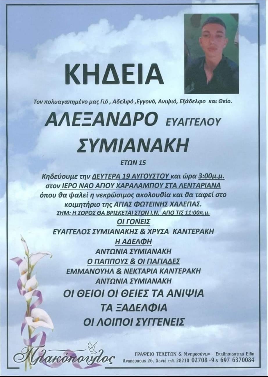 Στο πένθος έχουν βυθιστεί οι οικογένειες των τριών νέων παιδιών που έχασαν την ζωή τους στον ΒΟΑΚ, το πρωί του Σαββάτου (17/8), ενώ απέραντη θλίψη επικρατεί και σε ολόκληρη την κοινωνία των Χανίων για το τραγικό δυστύχημα.