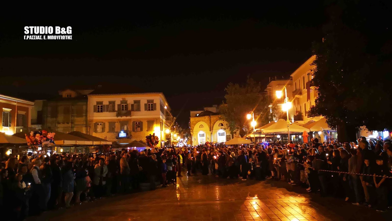 Οι επιτάφιοι του Αγίου Γεωργίου και της Παναγίας μετά την λιτανευτική πομπή, συναπαντήθηκαν μαζί στην κεντρικότερη πλατεία του Ναυπλίου.