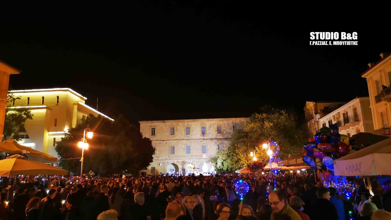 Ένα τεράστιο ποτάμι από πιστούς κατέκλυσε την ιστορική πλατεία Συντάγματος στο Ναύπλιο τη Μεγάλη Παρασκευή 26 Απριλίου 2019 κατά την συνάντηση των επιτάφιων.