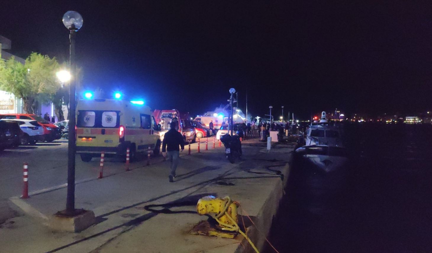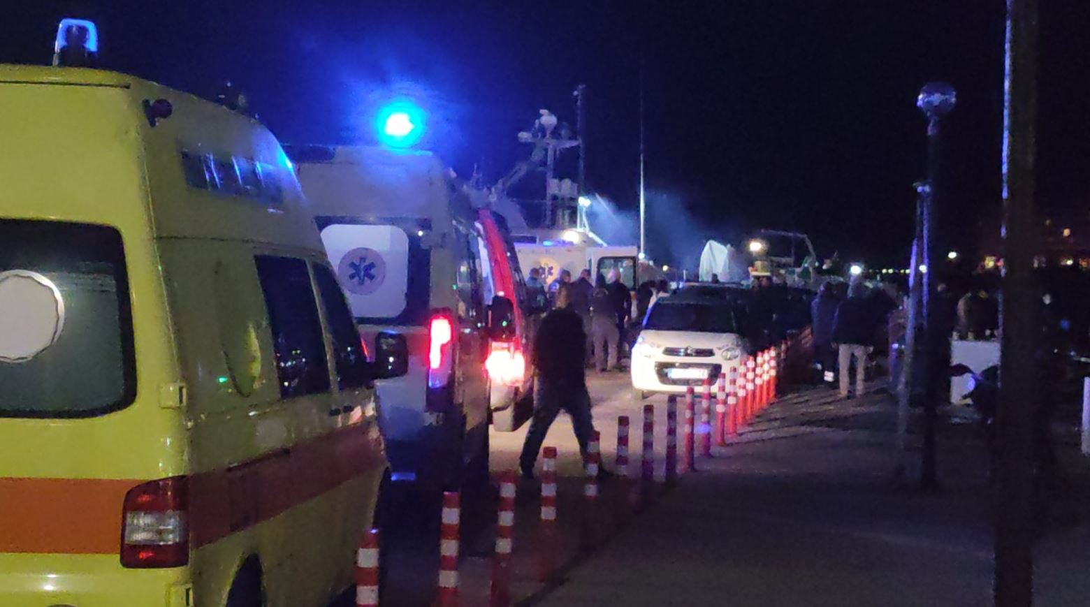Στο σημείο επιχειρούν πέντε ασθενοφόρα του ΕΚΑΒ, ενώ οι διασώστες παραμένουν σε ετοιμότητα για τη μεταφορά πιθανών νέων τραυματιών. Παράλληλα, ένα ελικόπτερο Super Puma πραγματοποιεί συνεχείς πτήσεις πάνω από τη θαλάσσια περιοχή με θερμικές κάμερες, προκειμένου να εντοπιστούν τυχόν επιζώντες.