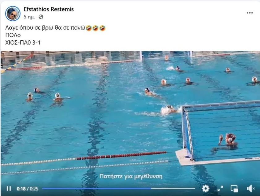 Αποτροπιασμό προκαλούν οι αναρτήσεις του νέου Γενικού Γραμματέα του δήμου Χίου Ευστάθιου Ρεστέμη, στο πλαίσιο της τελικής φάσης του πρωταθλήματος πόλο Μίνι Παίδων που πραγματοποιήθηκε στο Ιωνικό Κολυμβητήριο της Χίου, το περασμένο Σαββατοκύριακο.