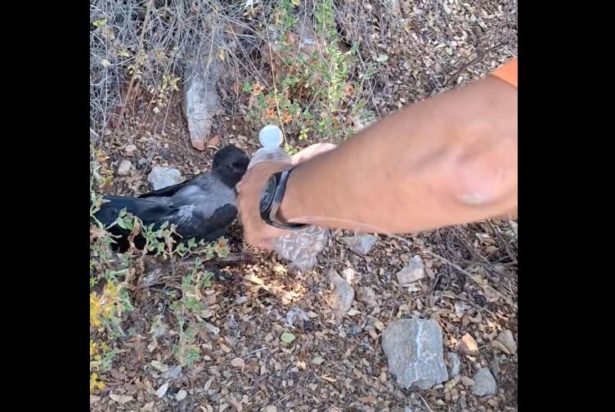 Το φως της δημοσιότητας είδε τις τελευταίες ώρες ένα συγκινητικό βίντεο όπου καταγράφεται η στιγμή που ο κάτοικος του νησιού Βασίλης Βιγκάκης προσφέρει νερό σε μία κουρούνα, η οποία ήταν εξαντλημένη.