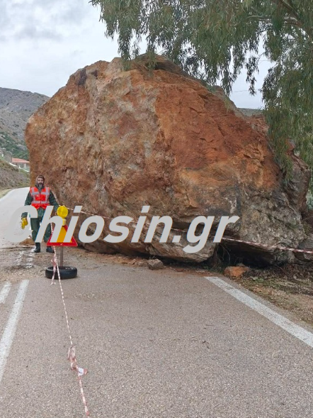 Στις φωτογραφίες που μεταδίδει το chiosin.gr φαίνονται τα μηχανήματα να έχουν αρχίσει την απομάκρυνση του βράχου.