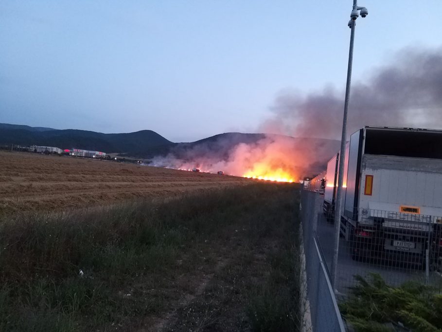 Πυρκαγιά σε ξερά χόρτα σε χωράφι κοντά στις αποθήκες του Μασούτη, στο Καβαλάλι Θεσσαλονίκης, ξέσπασε το απόγευμα του Σαββάτου.
