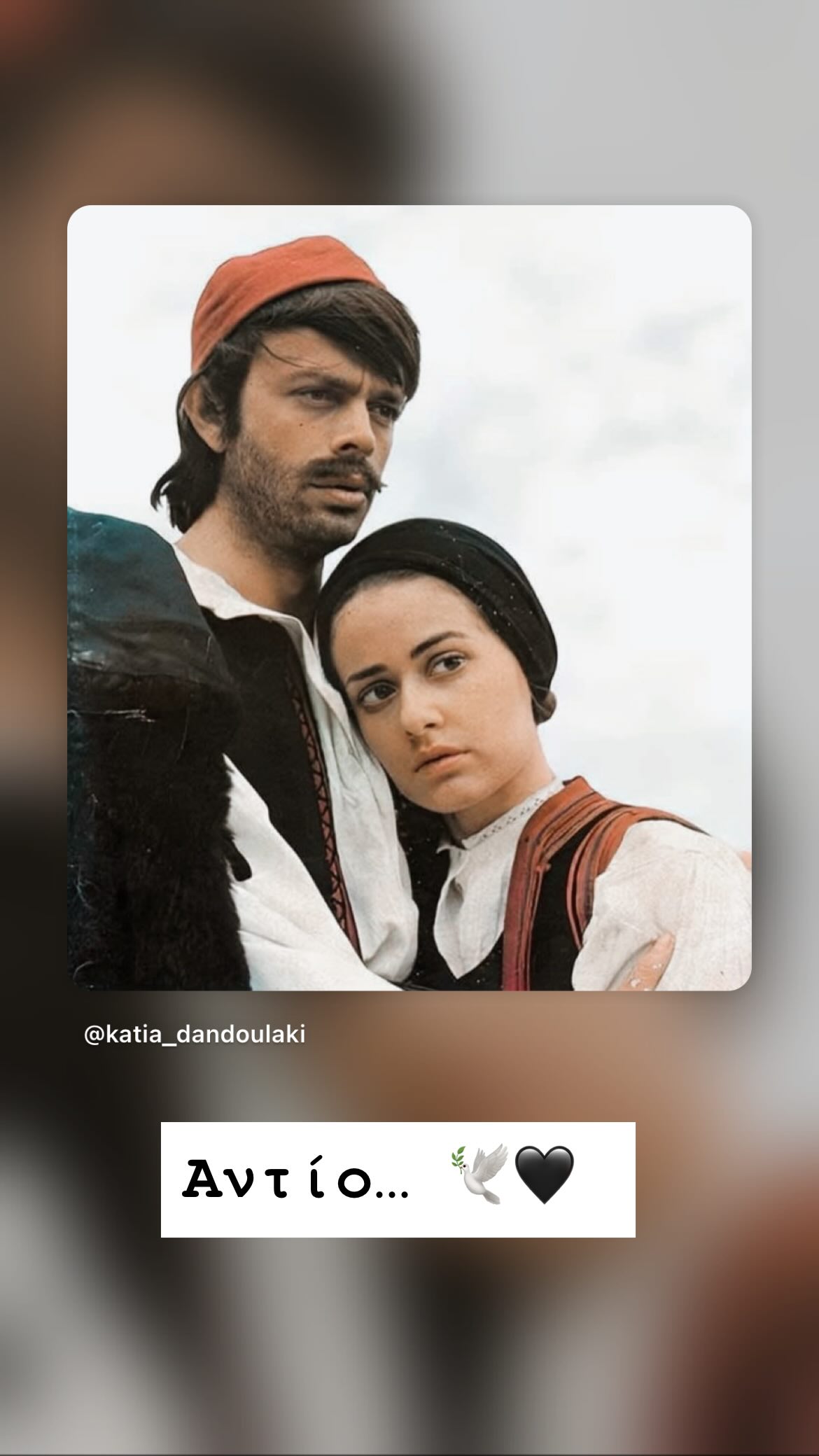 Η ηθοποιός Κάτια Δανδουλάκη, με την οποία έγραψαν ιστορία τόσο στον ελληνικό κινηματογράφο όσο και στο τηλεοπτικό… έπος του Νίκου Φώσκολου «Η Λάμψη», αποχαιρέτησε τον Χρήστο Πολίτη με μια φωτογραφία από το εξώφυλλο του περιοδικού «Ρομάντζο» το 1972 με αφορμή την ταινία «Σουλιώτες» που είχαν πρωταγωνιστήσει αμφότεροι.