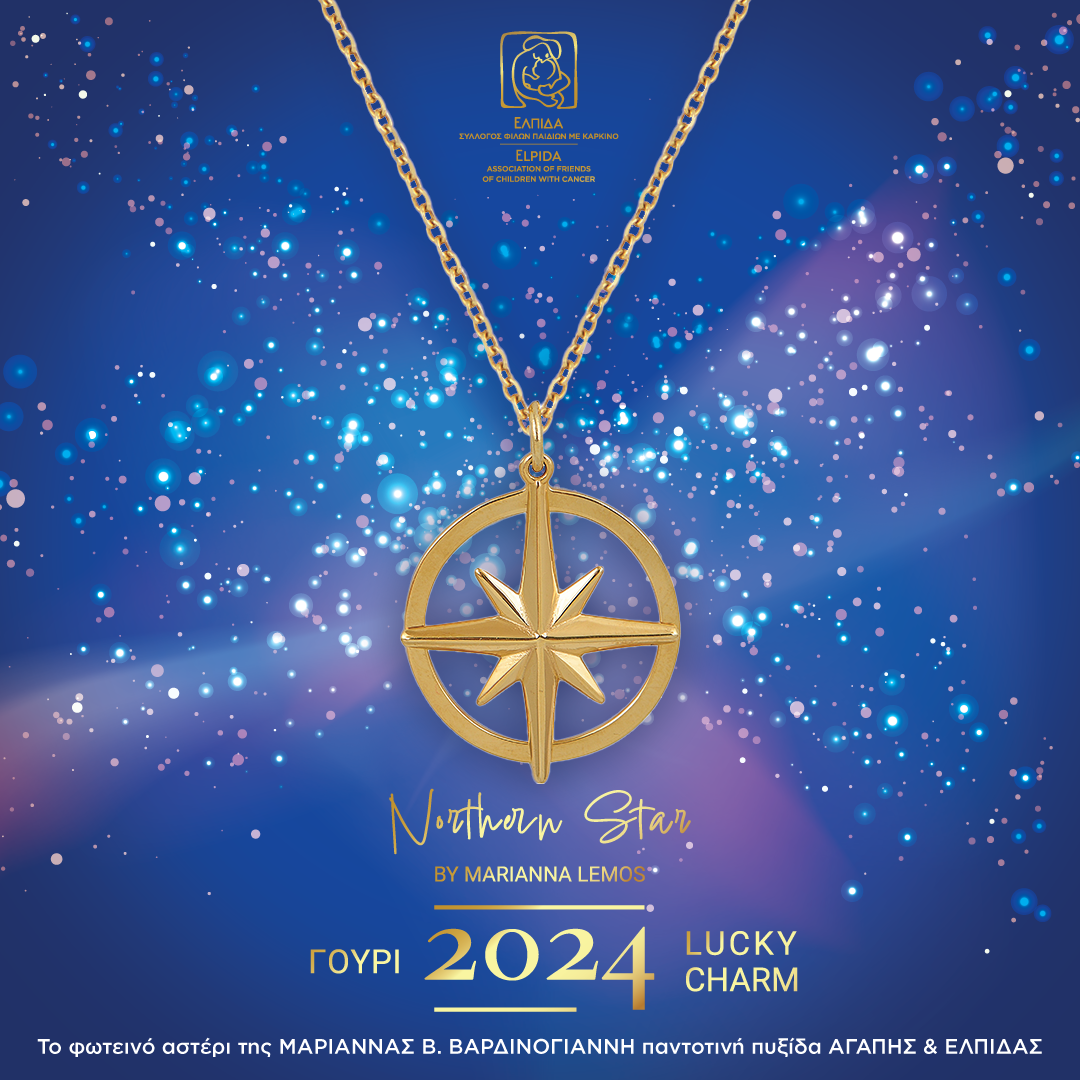Όπως κάθε χρόνο από το Bazaar μας θα μπορείτε να προμηθευτείτε το γούρι της ΕΛΠΙΔΑΣ για το 2024, που είναι ένα από τα πιο ξεχωριστά και ιδιαίτερα γούρια στην ιστορία του Συλλόγου. Πρόκειται για μια αναπαράσταση του Πολικού Αστέρα (“Northern Star“) ο οποίος συμβολίζει για την ΕΛΠΙΔΑ την παντοτινή πυξίδα αγάπης. Είναι αφιερωμένο στη μνήμη της Ιδρύτριας του Σωματείου, Μαριάννας Β. Βαρδινογιάννη, η οποία θα είναι για πάντα το φωτεινό αστέρι που θα καθοδηγεί την ΕΛΠΙΔΑ στο δρόμο της αγάπης, της προσφοράς και της αλληλεγγύης.