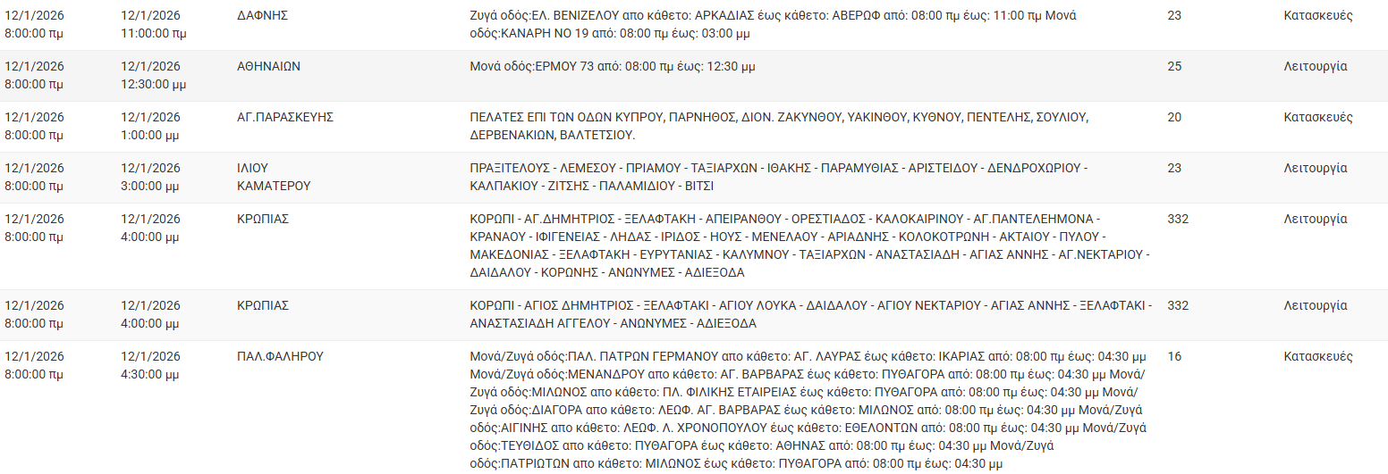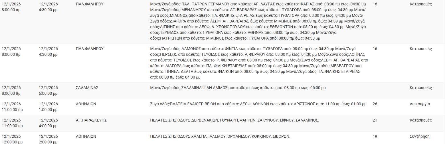 Διακοπές ρεύματος έχει προγραμματίσει για σήμερα, Δευτέρα 12 Ιανουαρίου 2026, ο ΔΕΔΔΗΕ σε διάφορες περιοχές της Αττικής.