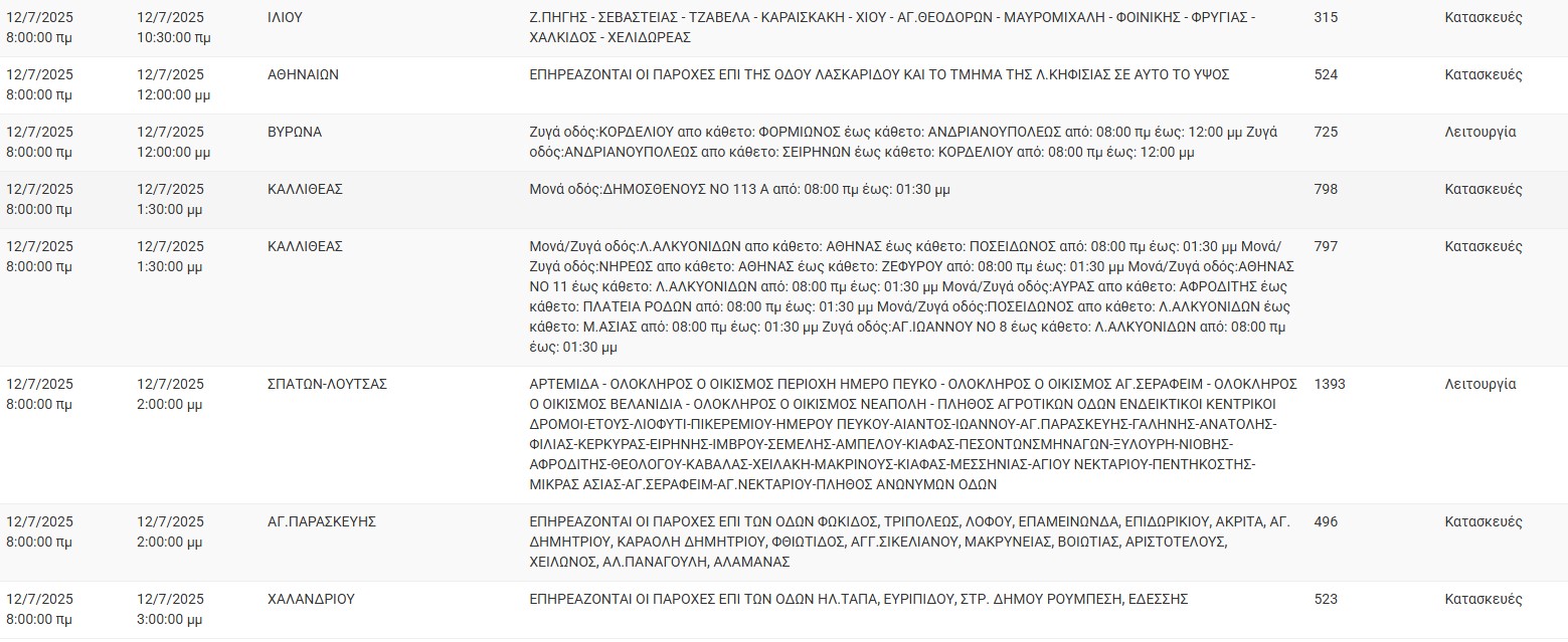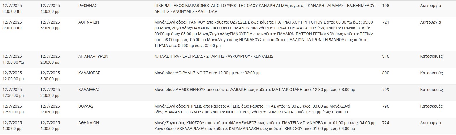 Διακοπές ρεύματος έχει προγραμματίσει για σήμερα, Σάββατο 12 Ιουλίου, ο ΔΕΔΔΗΕ σε διάφορες περιοχές της Αττικής.