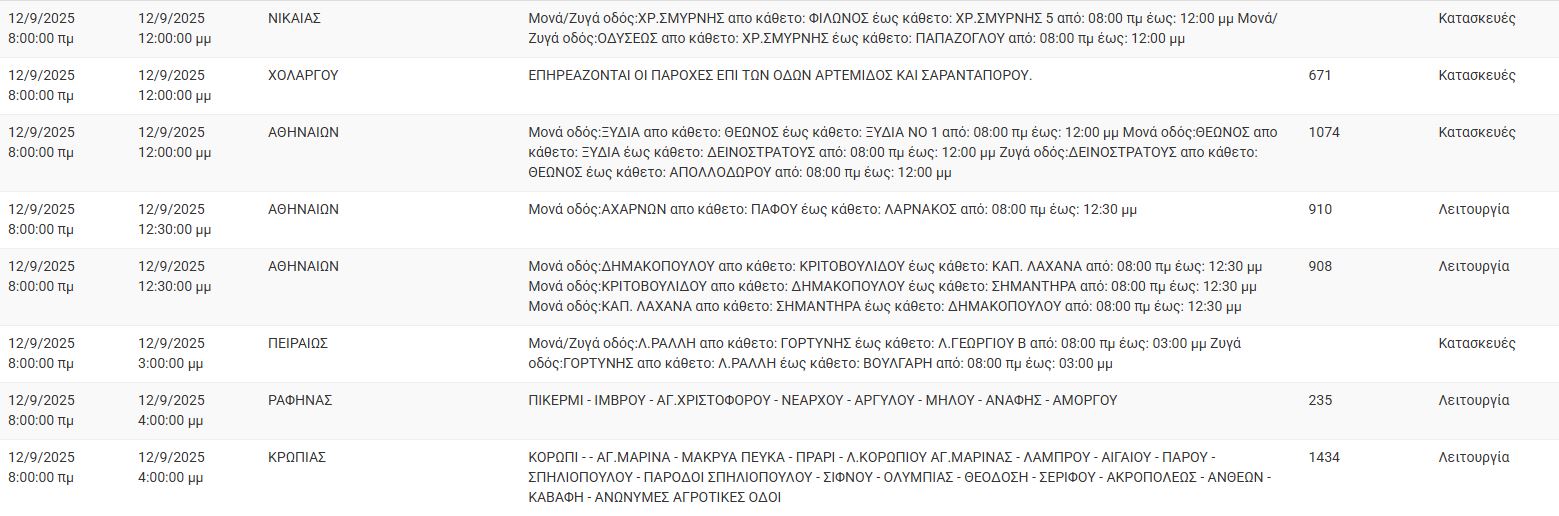 Διακοπές ρεύματος έχει προγραμματίσει για σήμερα, Παρασκευή 12 Σεπτεμβρίου, ο ΔΕΔΔΗΕ σε διάφορες περιοχές της Αττικής.