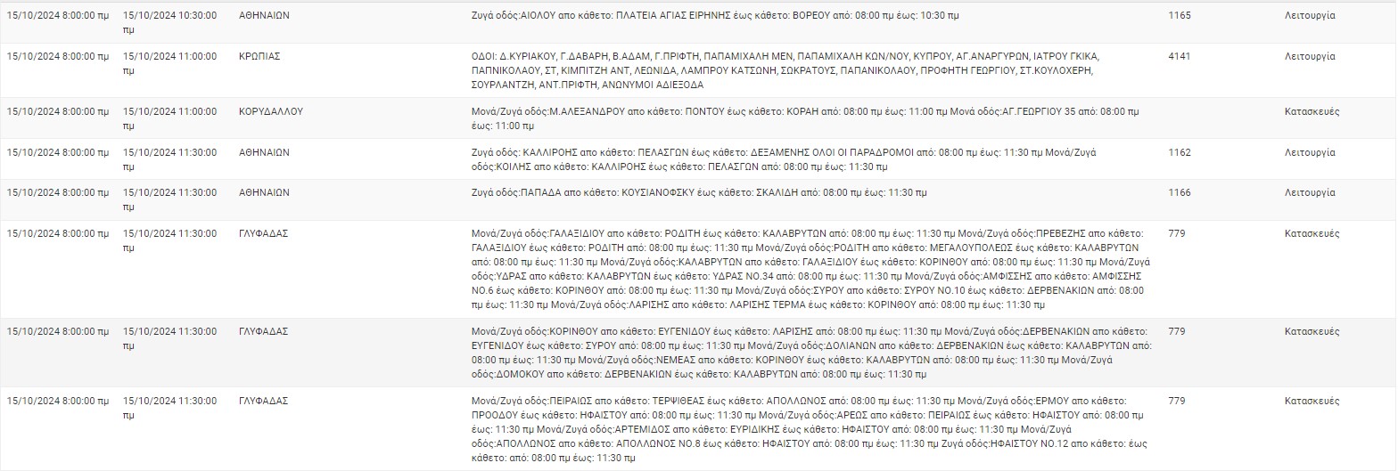 Διακοπές ρεύματος έχει προγραμματίσει για σήμερα, Τρίτη 15 Οκτωβρίου, ο ΔΕΔΔΗΕ σε διάφορες περιοχές της Αττικής.