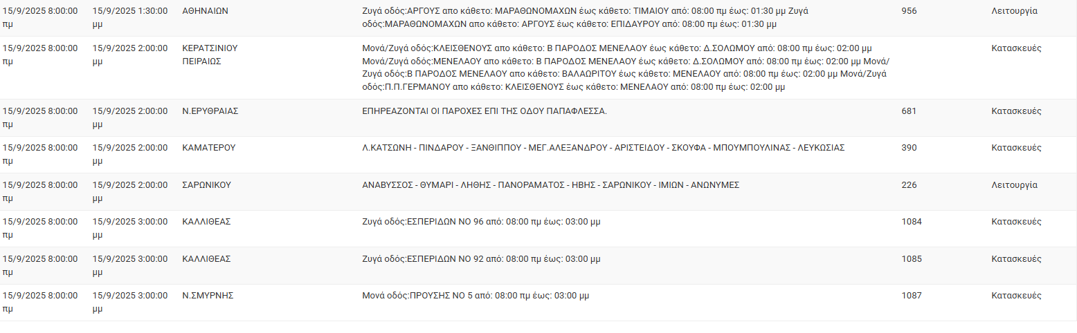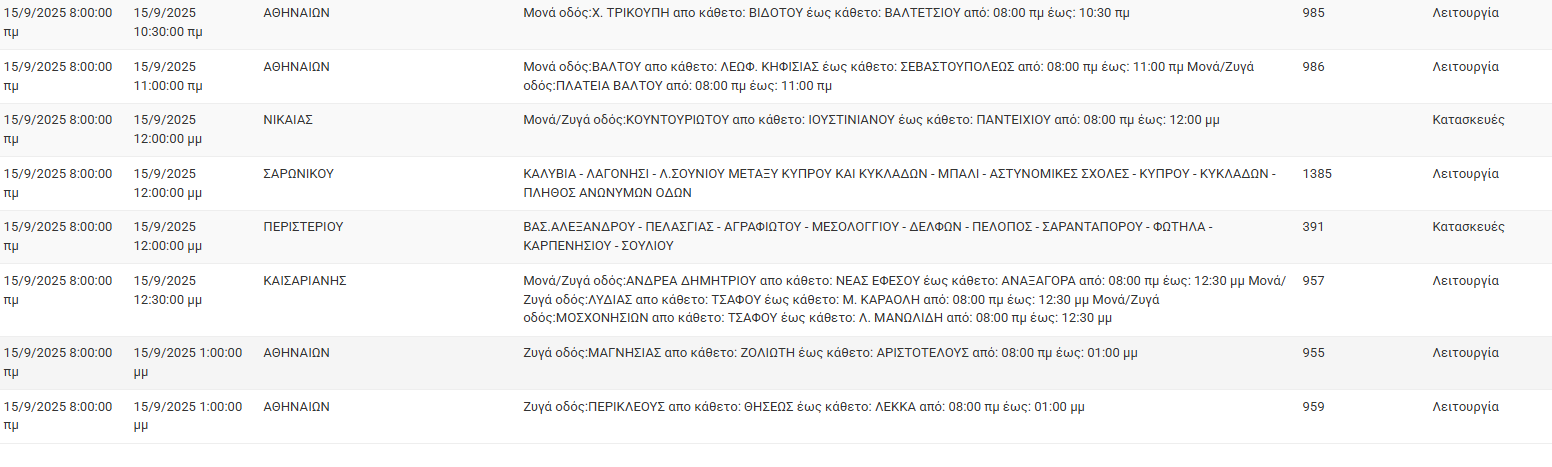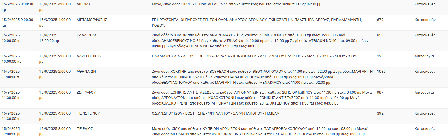 ΔΕΔΔΗΕ: Διακοπές ρεύματος σήμερα (15/9) στην Αθήνα και σε άλλες 14 περιοχές της Αττικής