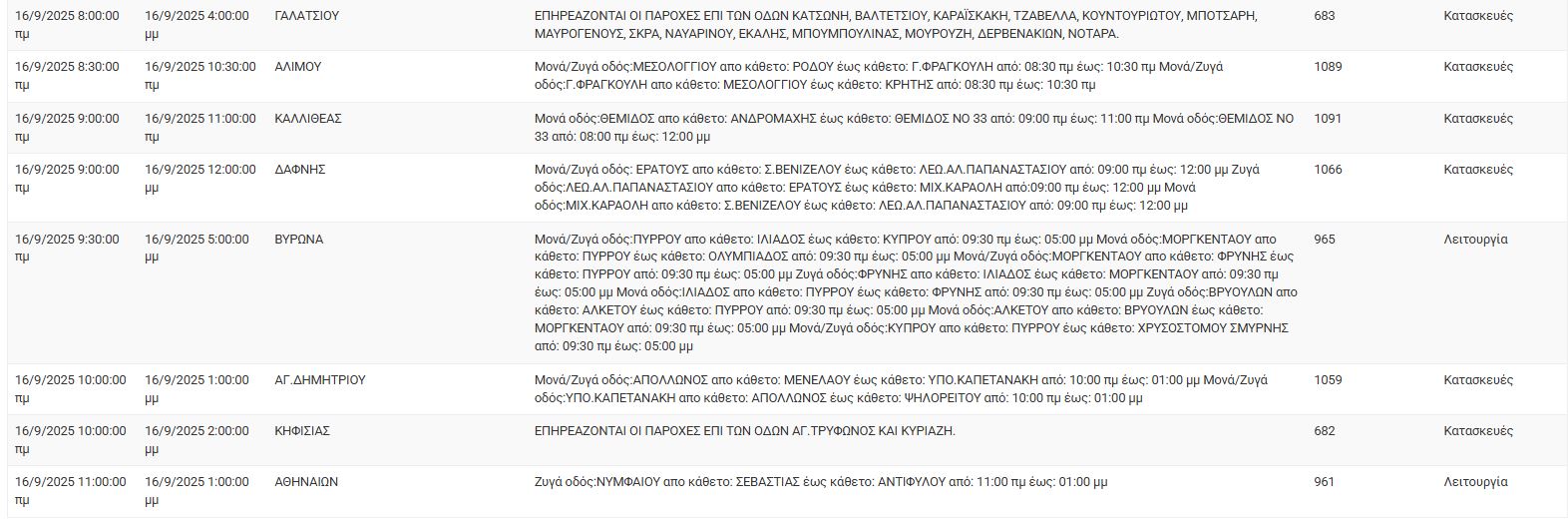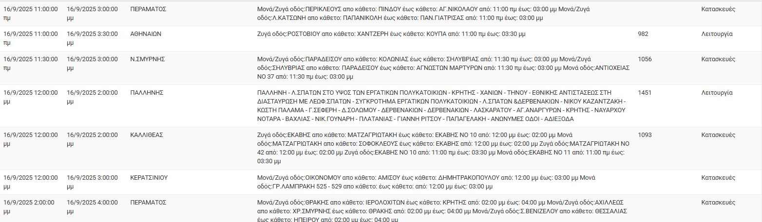 Διακοπές ρεύματος έχει προγραμματίσει για σήμερα, Τρίτη 16 Σεπτεμβρίου, ο ΔΕΔΔΗΕ σε διάφορες περιοχές της Αττικής.
