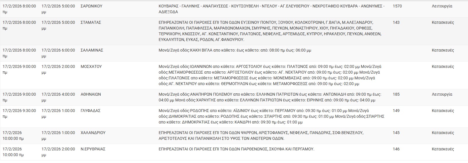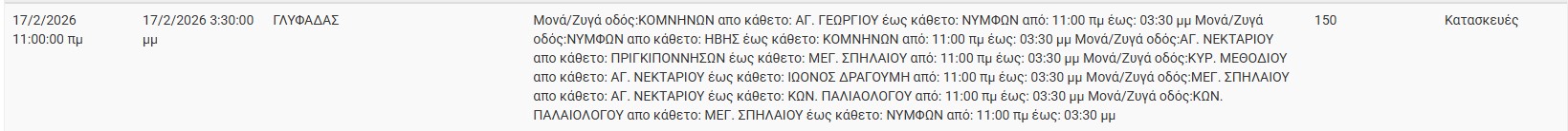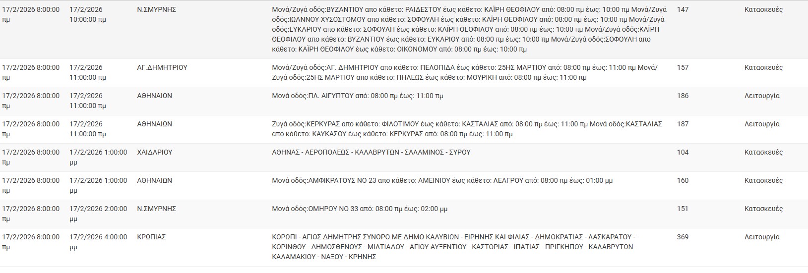 Διακοπές ρεύματος έχει προγραμματίσει για σήμερα, Τρίτη 17 Φεβρουαρίου 2026, ο ΔΕΔΔΗΕ σε διάφορες περιοχές της Αττικής.