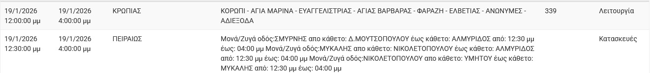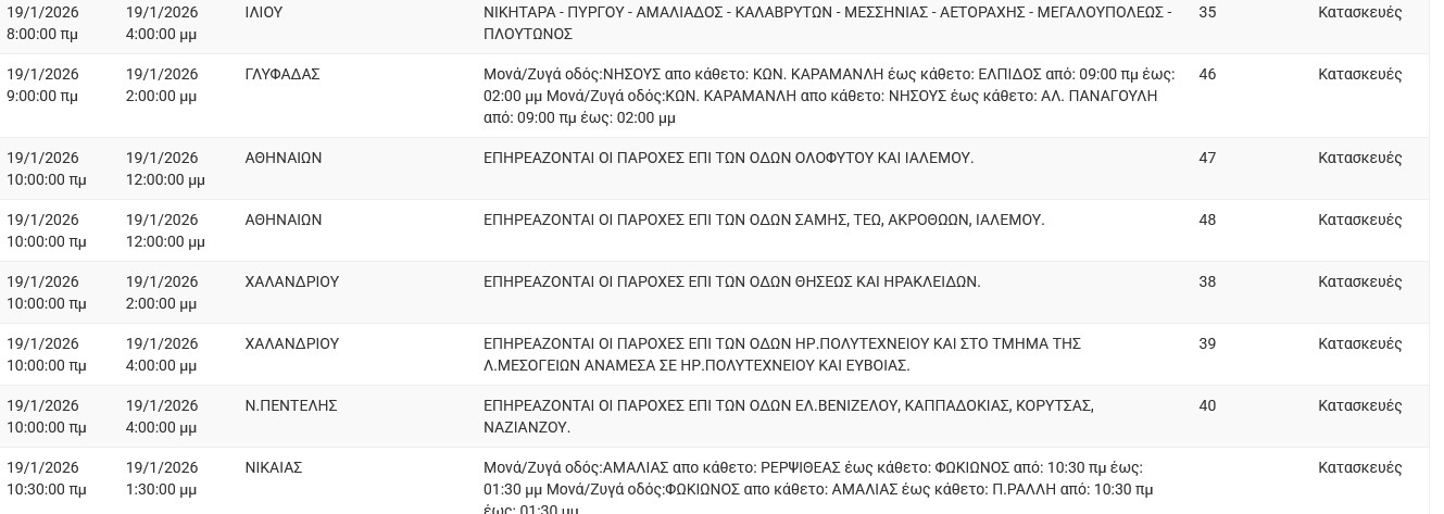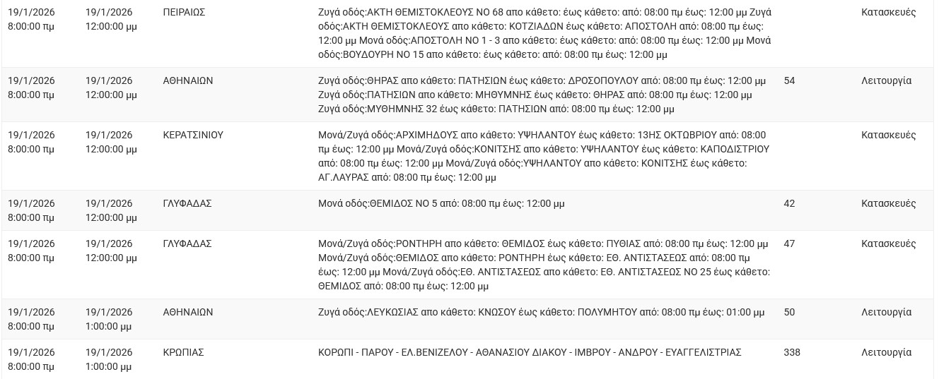 Διακοπές ρεύματος έχει προγραμματίσει για σήμερα, Δευτέρα 19 Ιανουαρίου 2026, ο ΔΕΔΔΗΕ σε διάφορες περιοχές της Αττικής.