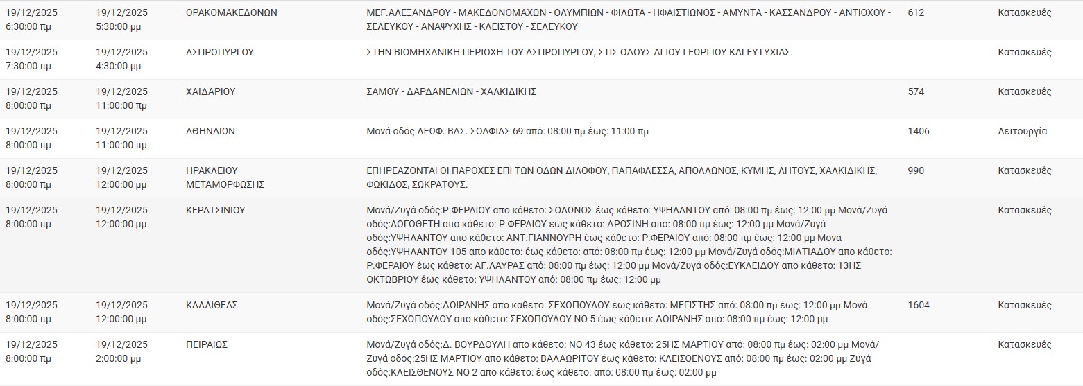 Διακοπές ρεύματος έχει προγραμματίσει για σήμερα, Παρασκευή 19 Δεκεμβρίου 2025, ο ΔΕΔΔΗΕ σε διάφορες περιοχές της Αττικής.