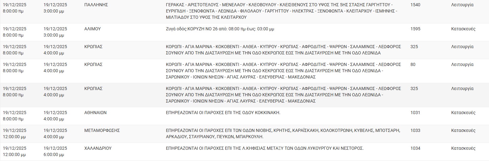 ΔΕΔΔΗΕ: Διακοπές ρεύματος σήμερα (19/12) στην Αθήνα και σε άλλες 12 περιοχές της Αττικής