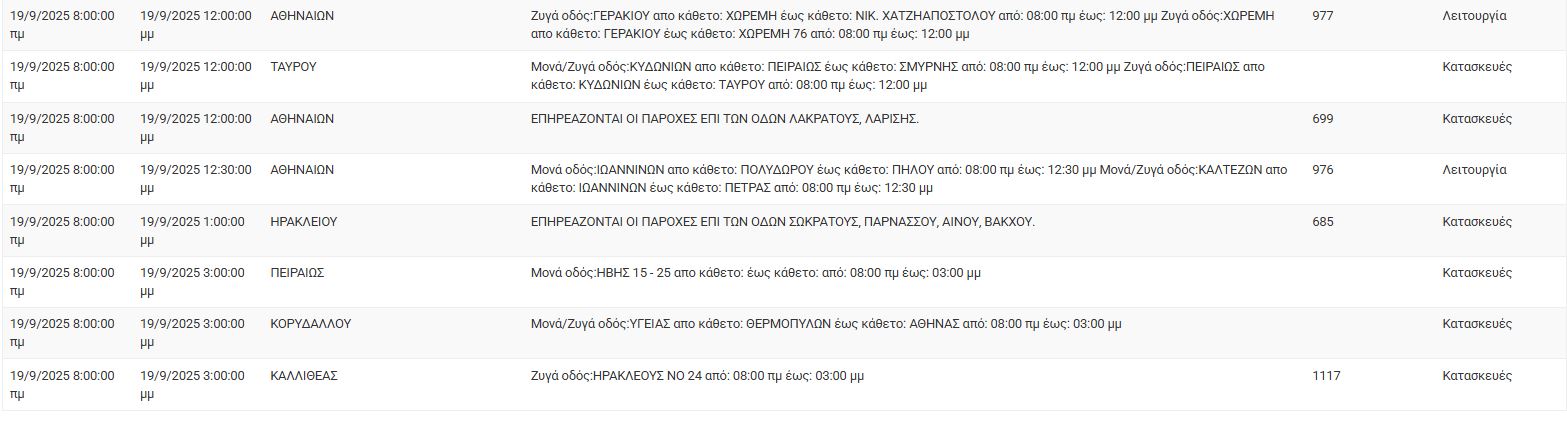 ΔΕΔΔΗΕ: Διακοπές ρεύματος σήμερα (19/9) στην Αθήνα και σε άλλες 16 περιοχές της Αττικής
