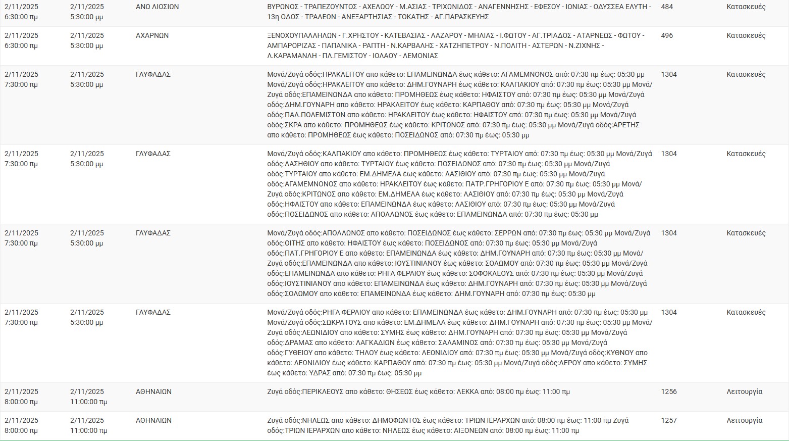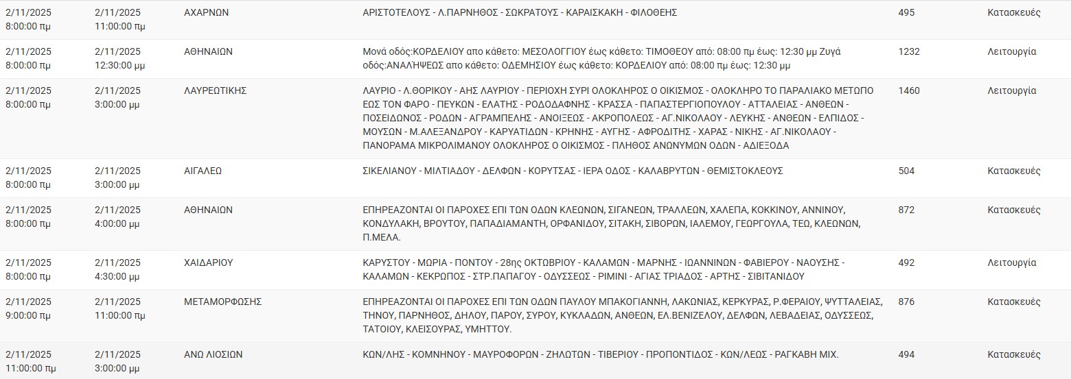 Διακοπές ρεύματος έχει προγραμματίσει για σήμερα, Κυριακή 2 Νοεμβρίου, ο ΔΕΔΔΗΕ σε διάφορες περιοχές της Αττικής.