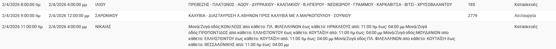 Διακοπές ρεύματος έχει προγραμματίσει για σήμερα, Πέμπτη 2 Απριλίου 2026, ο ΔΕΔΔΗΕ σε διάφορες περιοχές της Αττικής.