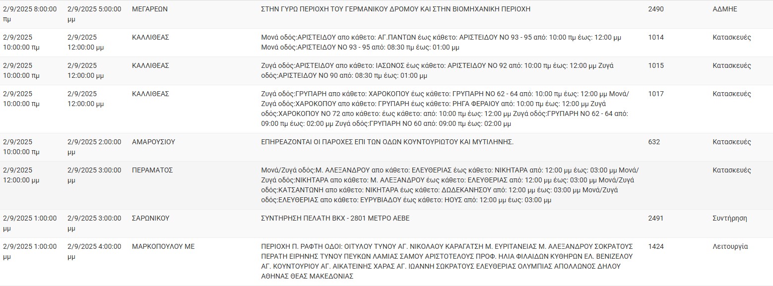 Διακοπές ρεύματος έχει προγραμματίσει για σήμερα, Τρίτη 2 Σεπτεμβρίου, ο ΔΕΔΔΗΕ σε διάφορες περιοχές της Αττικής.