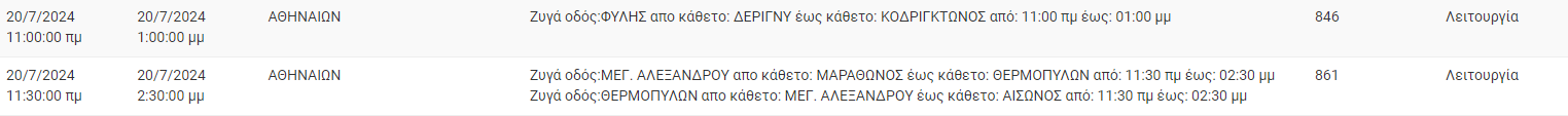 Διακοπές ρεύματος έχει προγραμματίσει για σήμερα, Σάββατο 20 Ιουλίου, ο ΔΕΔΔΗΕ σε διάφορες περιοχές της Αττικής.