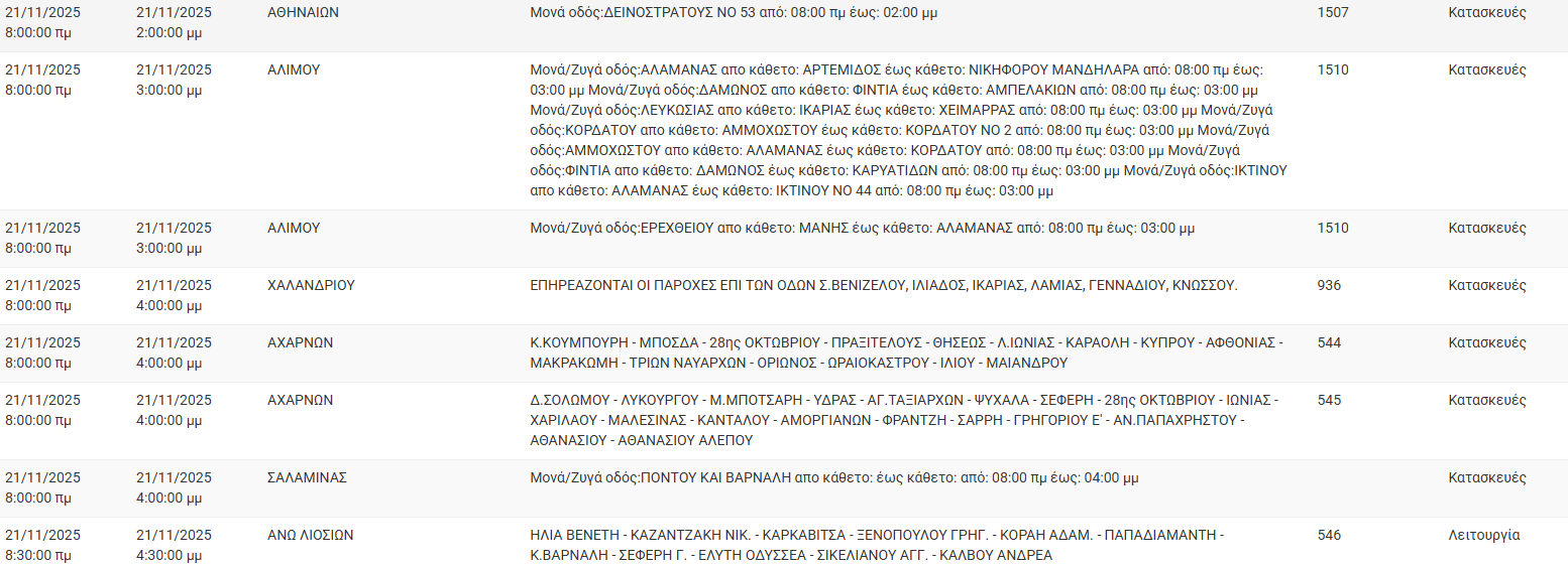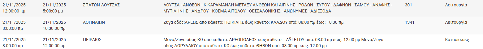 Διακοπές ρεύματος έχει προγραμματίσει για σήμερα, Παρασκευή 21 Νοεμβρίου, ο ΔΕΔΔΗΕ σε διάφορες περιοχές της Αττικής.