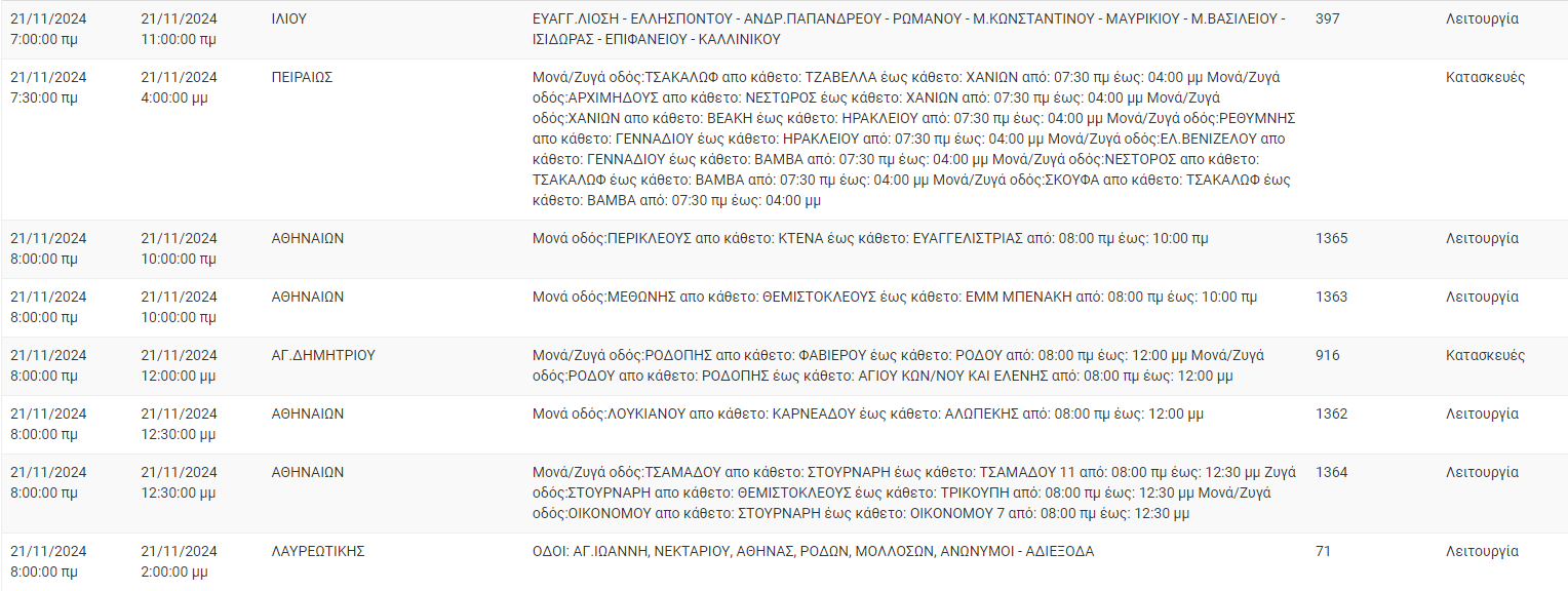 Διακοπές ρεύματος έχει προγραμματίσει για σήμερα, Πέμπτη 21 Νοεμβρίου, ο ΔΕΔΔΗΕ σε διάφορες περιοχές της Αττικής.