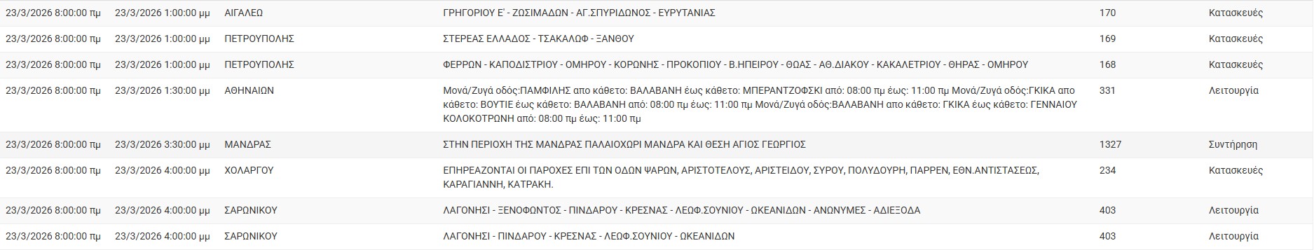 ΔΕΔΔΗΕ: Διακοπές ρεύματος σήμερα (23/3) στην Αθήνα και σε άλλες 13 περιοχές της Αττικής