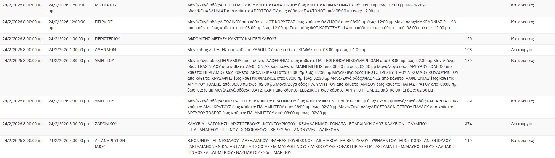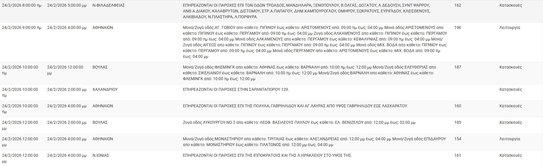 Διακοπές ρεύματος έχει προγραμματίσει για σήμερα, Τρίτη 24 Φεβρουαρίου 2026, ο ΔΕΔΔΗΕ σε διάφορες περιοχές της Αττικής.