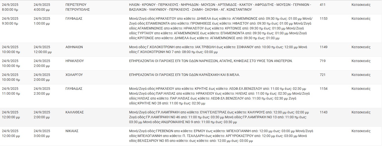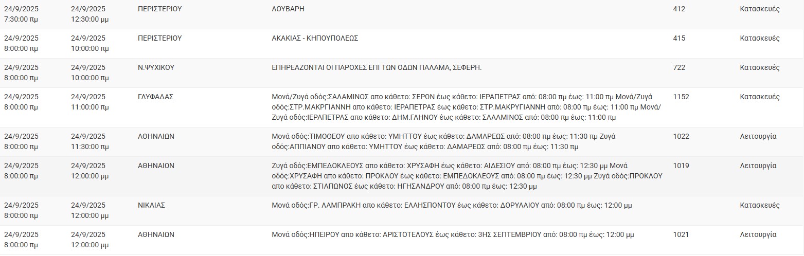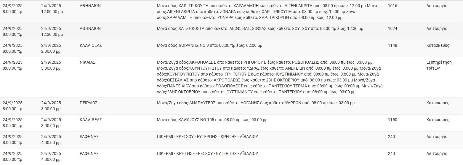 Διακοπές ρεύματος έχει προγραμματίσει για σήμερα, Τετάρτη 24 Σεπτεμβρίου, ο ΔΕΔΔΗΕ σε διάφορες περιοχές της Αττικής.