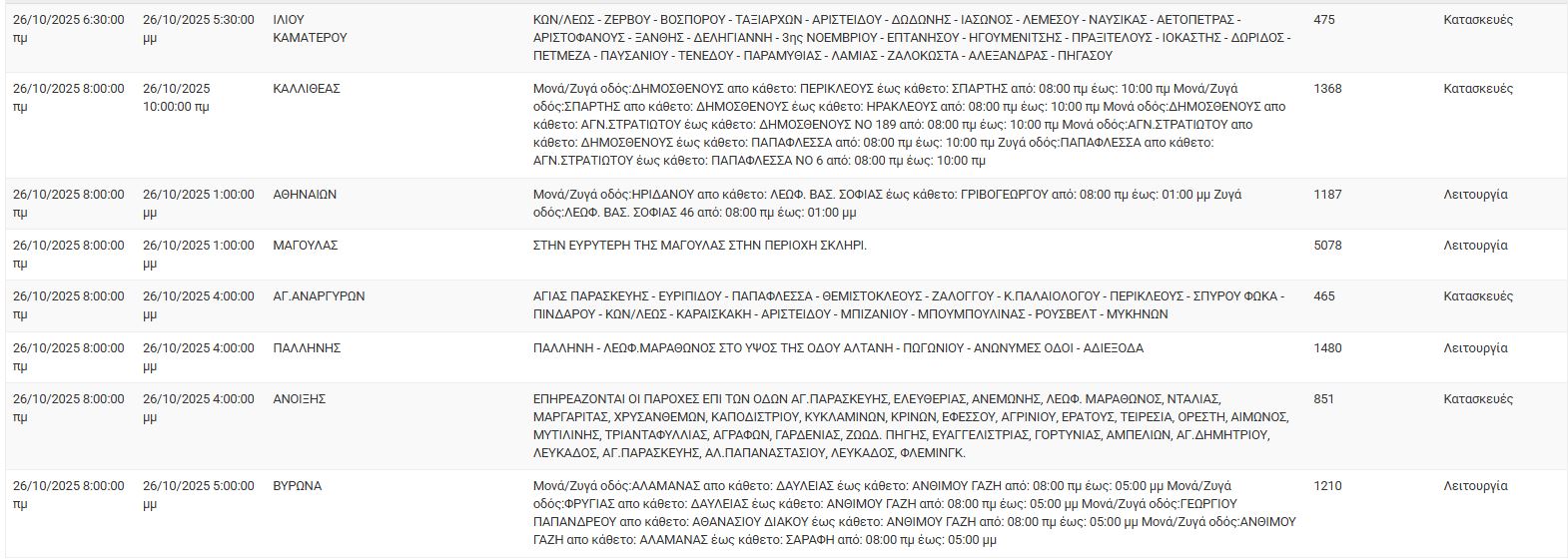 Διακοπές ρεύματος έχει προγραμματίσει για σήμερα, Κυριακή 26 Οκτωβρίου, ο ΔΕΔΔΗΕ σε διάφορες περιοχές της Αττικής.