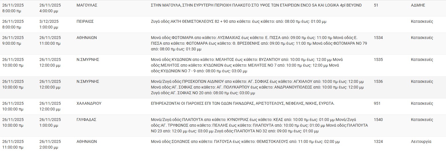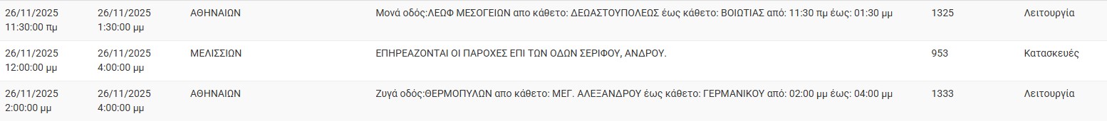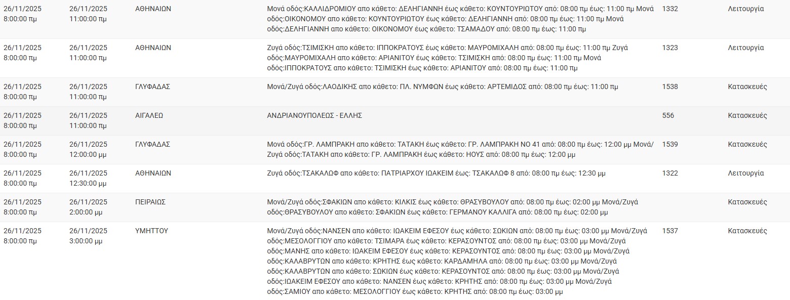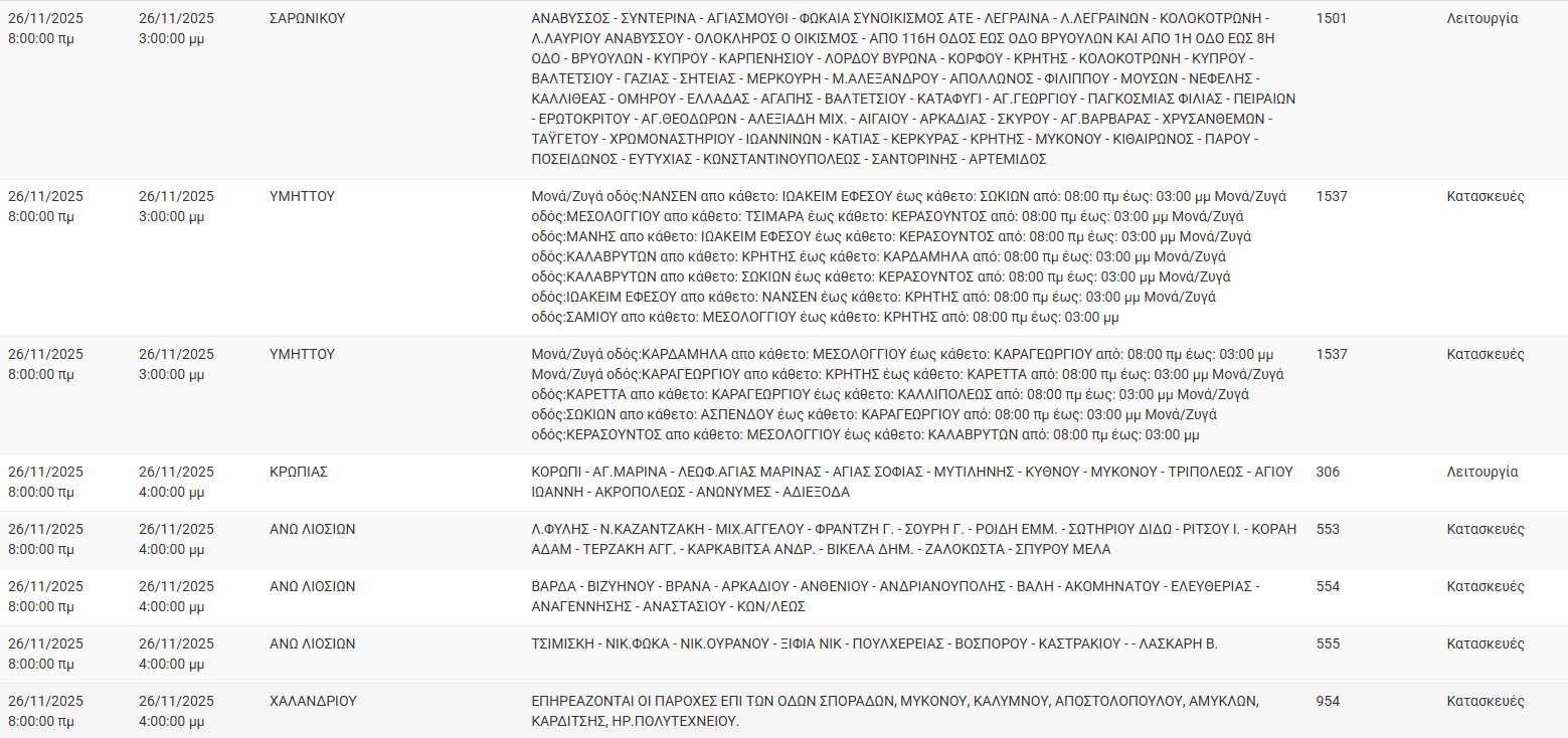 Διακοπές ρεύματος έχει προγραμματίσει για σήμερα, Τετάρτη 26 Νοεμβρίου, ο ΔΕΔΔΗΕ σε διάφορες περιοχές της Αττικής.