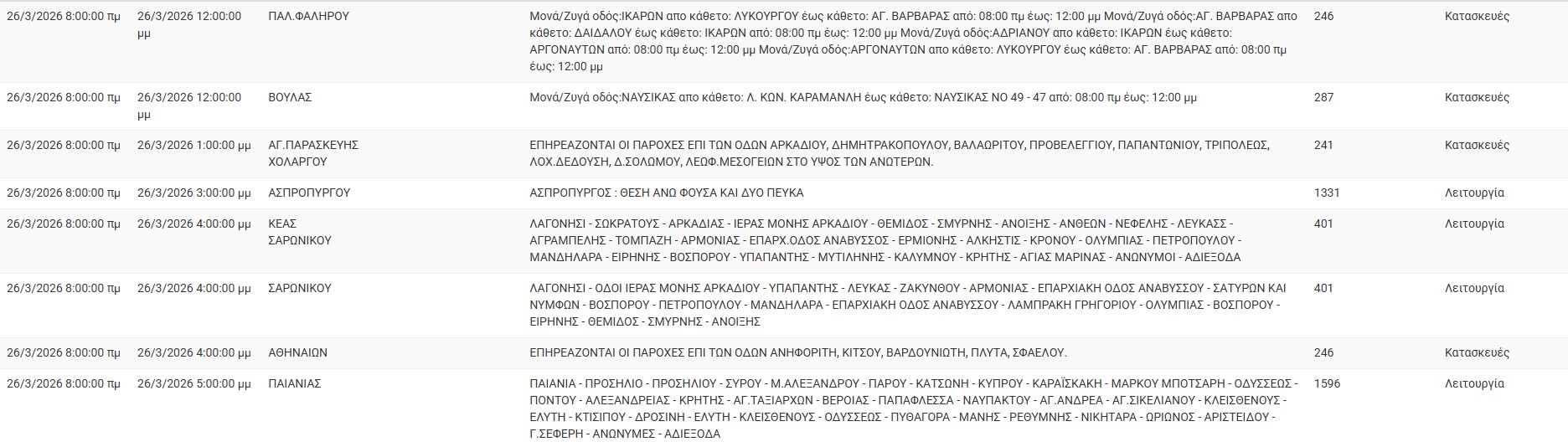 Διακοπές ρεύματος έχει προγραμματίσει για σήμερα, Πέμπτη 26 Μαρτίου 2026, ο ΔΕΔΔΗΕ σε διάφορες περιοχές της Αττικής.