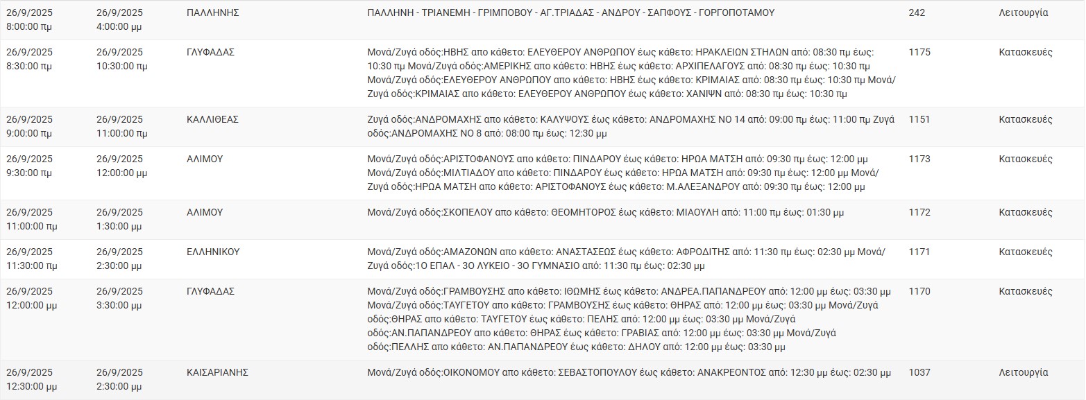 Διακοπές ρεύματος έχει προγραμματίσει για σήμερα, Παρασκευή 26 Σεπτεμβρίου, ο ΔΕΔΔΗΕ σε διάφορες περιοχές της Αττικής.