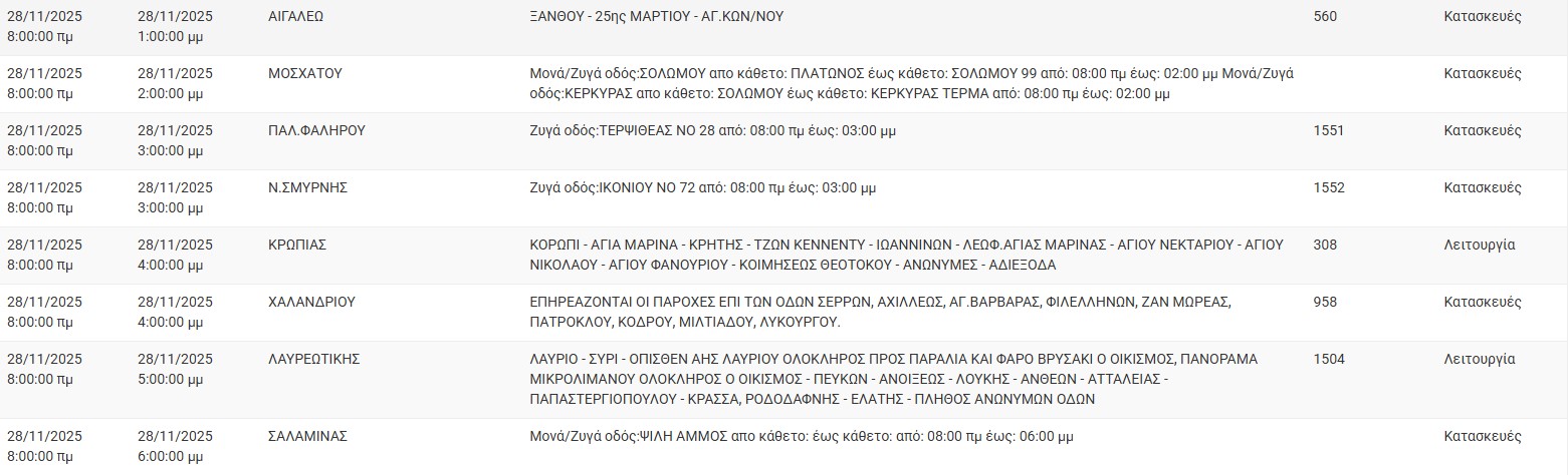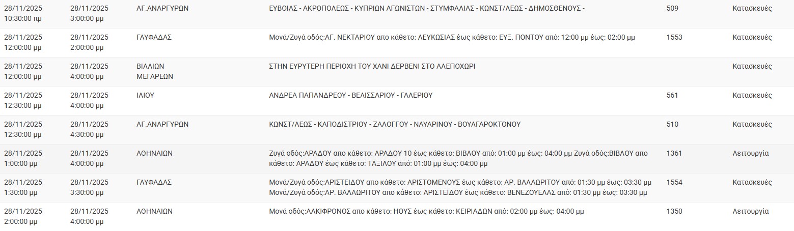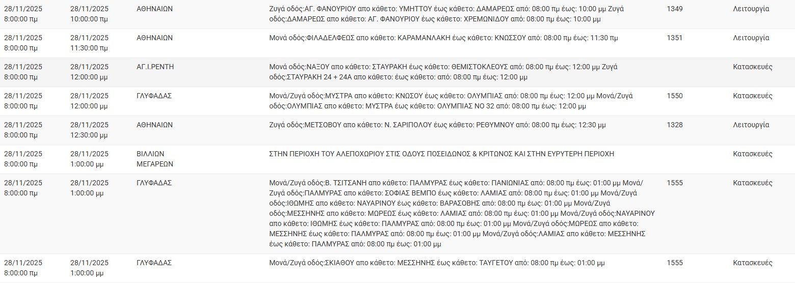Διακοπές ρεύματος έχει προγραμματίσει για σήμερα, Παρασκευή 28 Νοεμβρίου, ο ΔΕΔΔΗΕ σε διάφορες περιοχές της Αττικής.