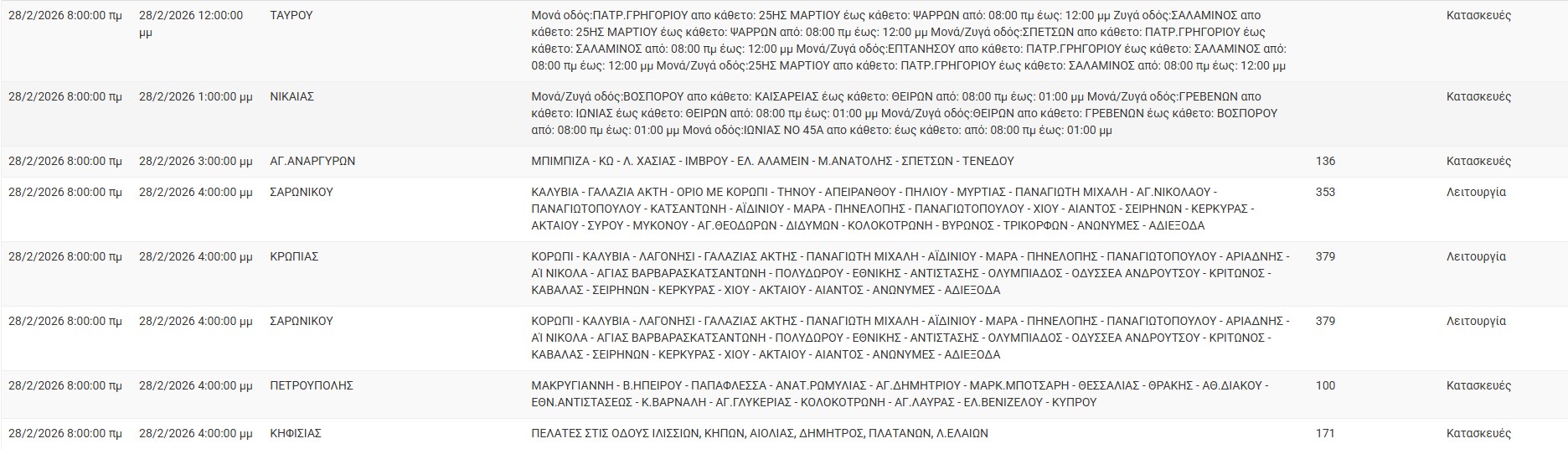Διακοπές ρεύματος έχει προγραμματίσει για σήμερα, Σάββατο 28 Φεβρουαρίου 2026, ο ΔΕΔΔΗΕ σε διάφορες περιοχές της Αττικής.