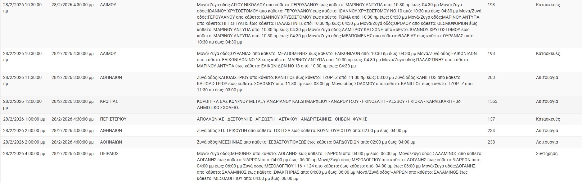 ΔΕΔΔΗΕ: Διακοπές ρεύματος σήμερα (28/2) στην Αθήνα και σε άλλες 13 περιοχές της Αττικής