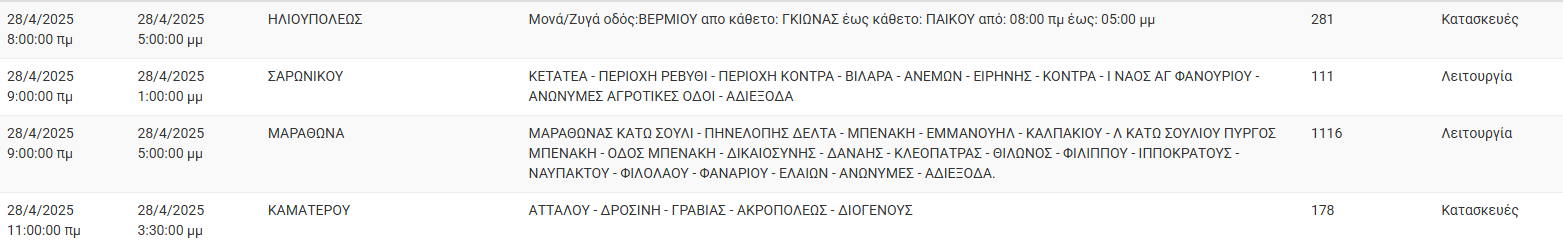 Διακοπές ρεύματος έχει προγραμματίσει για σήμερα, Δευτέρα 28 Απριλίου, ο ΔΕΔΔΗΕ σε διάφορες περιοχές της Αττικής.