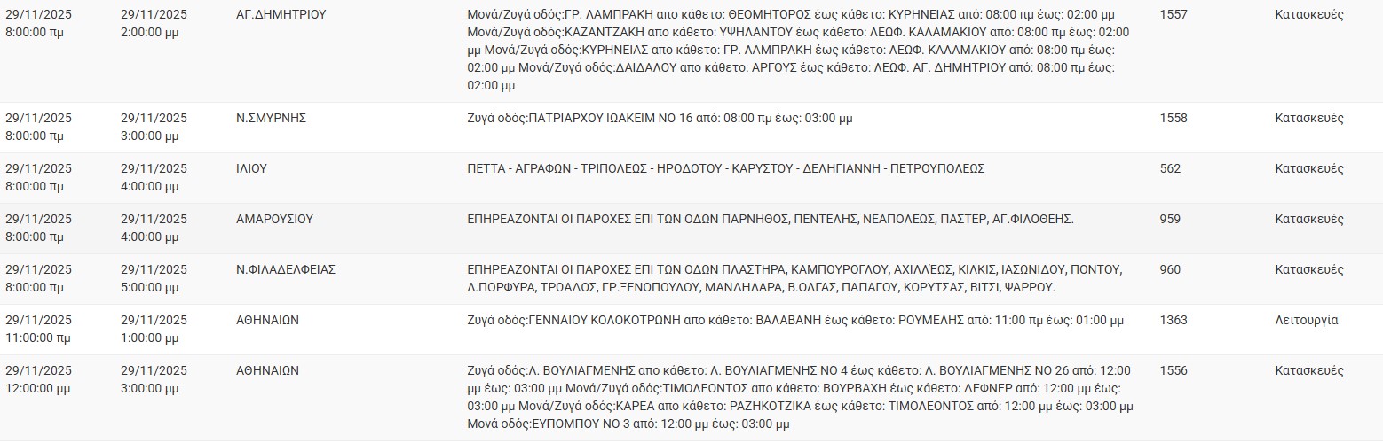 Διακοπές ρεύματος έχει προγραμματίσει για σήμερα, Σάββατο 29 Νοεμβρίου, ο ΔΕΔΔΗΕ σε διάφορες περιοχές της Αττικής.