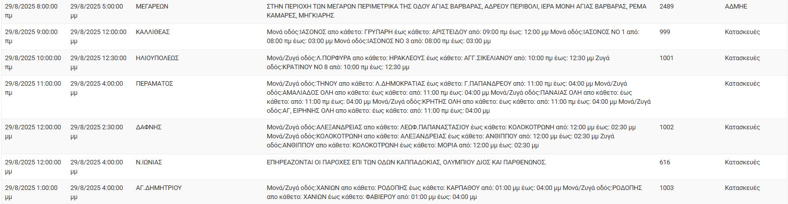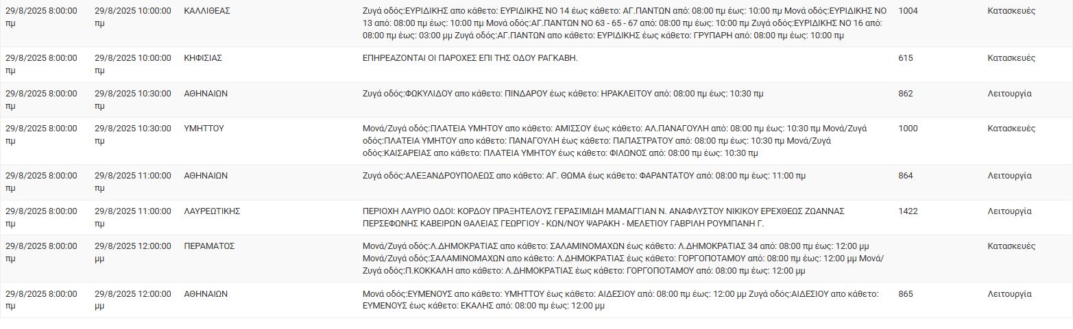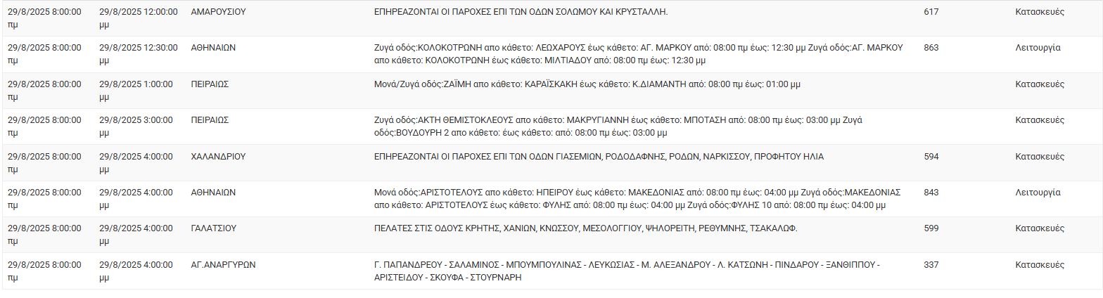 ΔΕΔΔΗΕ: Διακοπές ρεύματος σήμερα (29/8) στην Αθήνα και σε άλλες 15 περιοχές της Αττικής