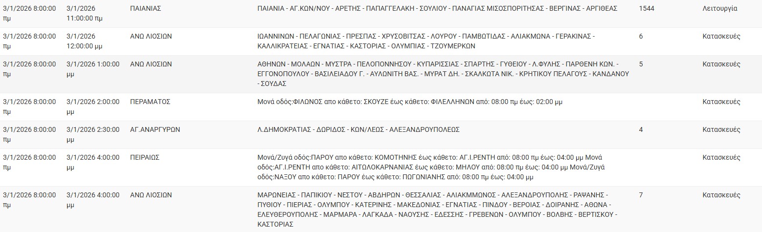 Διακοπές ρεύματος έχει προγραμματίσει για σήμερα, Σάββατο 3 Ιανουαρίου 2026, ο ΔΕΔΔΗΕ σε διάφορες περιοχές της Αττικής.