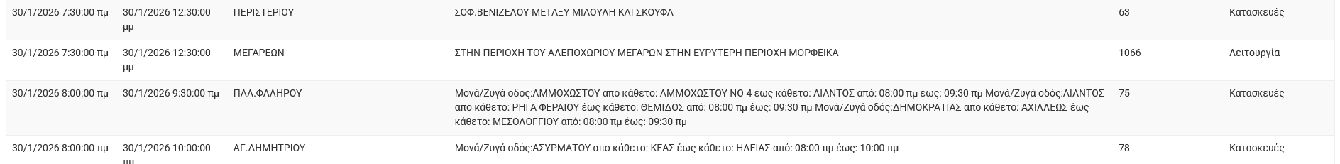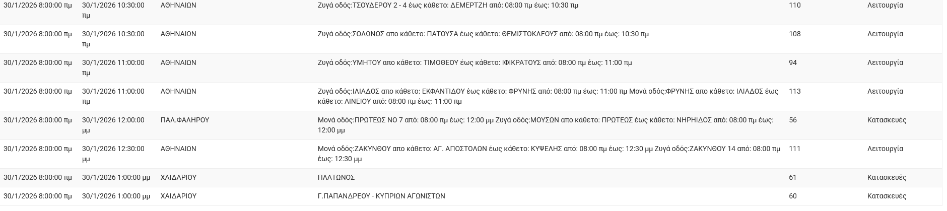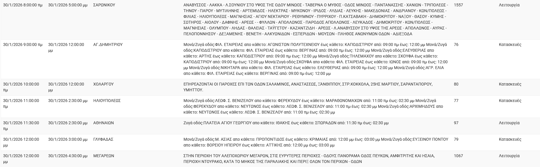 • Διακοπές ρεύματος έχει προγραμματίσει για σήμερα, Παρασκευή 30 Ιανουαρίου 2026, ο ΔΕΔΔΗΕ σε διάφορες περιοχές της Αττικής.