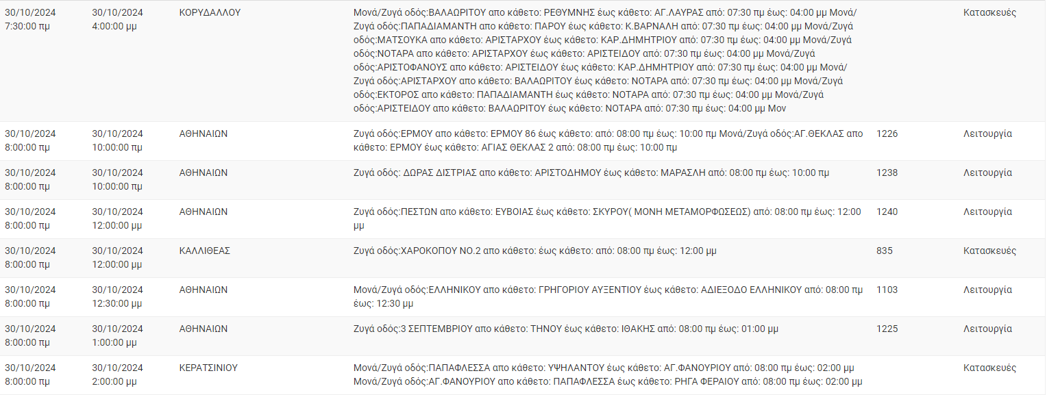 Διακοπές ρεύματος έχει προγραμματίσει για σήμερα, Τετάρτη 30 Οκτωβρίου, ο ΔΕΔΔΗΕ σε διάφορες περιοχές της Αττικής.