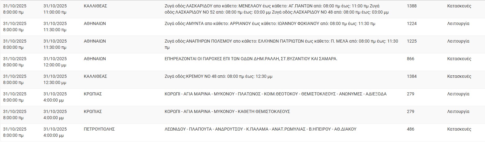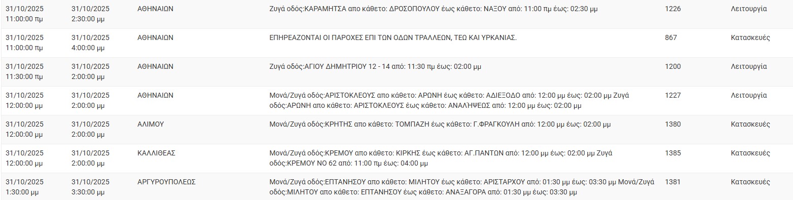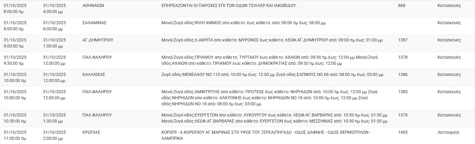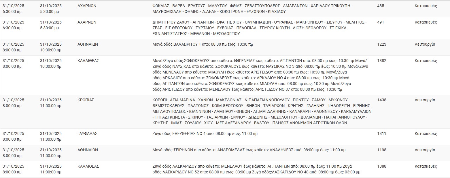 ΔΕΔΔΗΕ: Διακοπές ρεύματος σήμερα (31/10) στην Αθήνα και σε άλλες 10 περιοχές της Αττικής