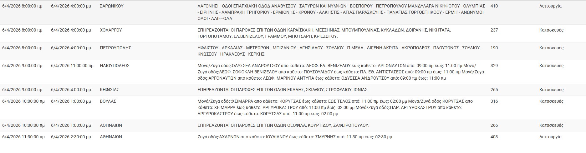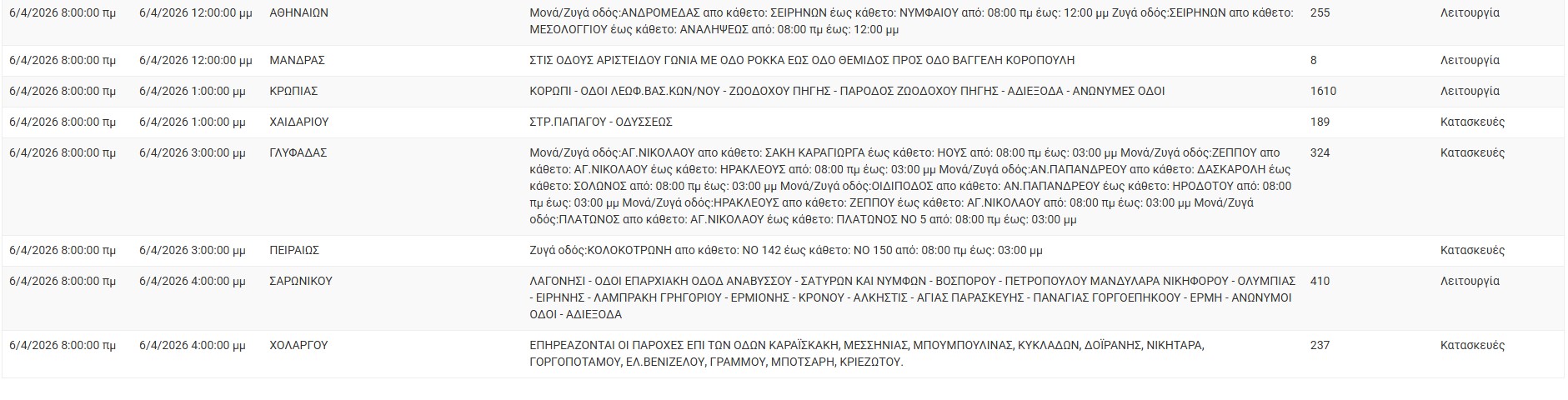 ΔΕΔΔΗΕ: Διακοπές ρεύματος σήμερα (6/4) στην Αθήνα και σε άλλες 11 περιοχές της Αττικής