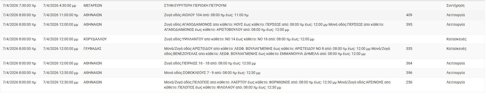 Διακοπές ρεύματος έχει προγραμματίσει για σήμερα, Τρίτη 7 Απριλίου 2026, ο ΔΕΔΔΗΕ σε διάφορες περιοχές της Αττικής.