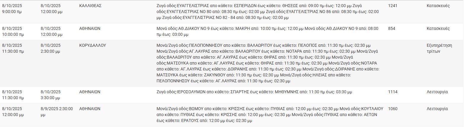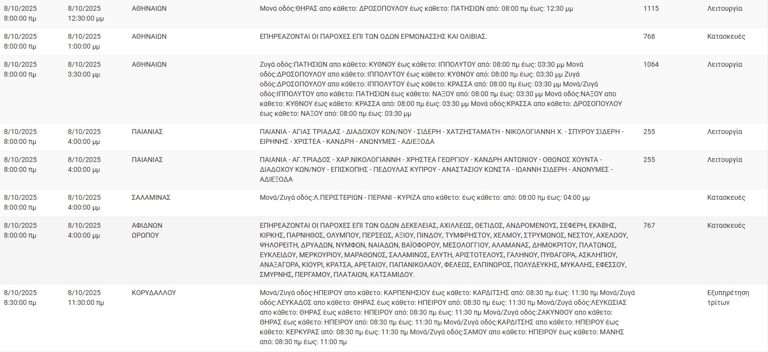 Διακοπές ρεύματος έχει προγραμματίσει για σήμερα, Τετάρτη 8 Οκτωβρίου, ο ΔΕΔΔΗΕ σε διάφορες περιοχές της Αττικής.