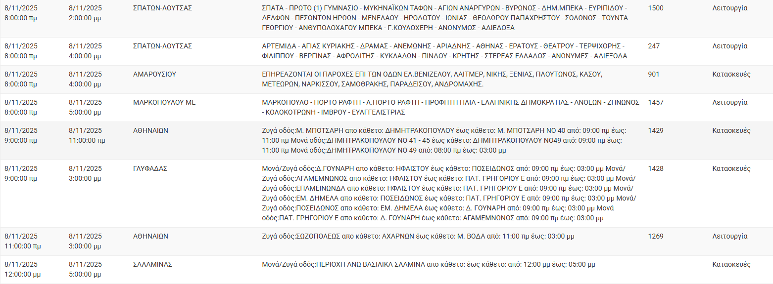 Διακοπές ρεύματος έχει προγραμματίσει για σήμερα, Σάββατο 8 Νοεμβρίου, ο ΔΕΔΔΗΕ σε διάφορες περιοχές της Αττικής.